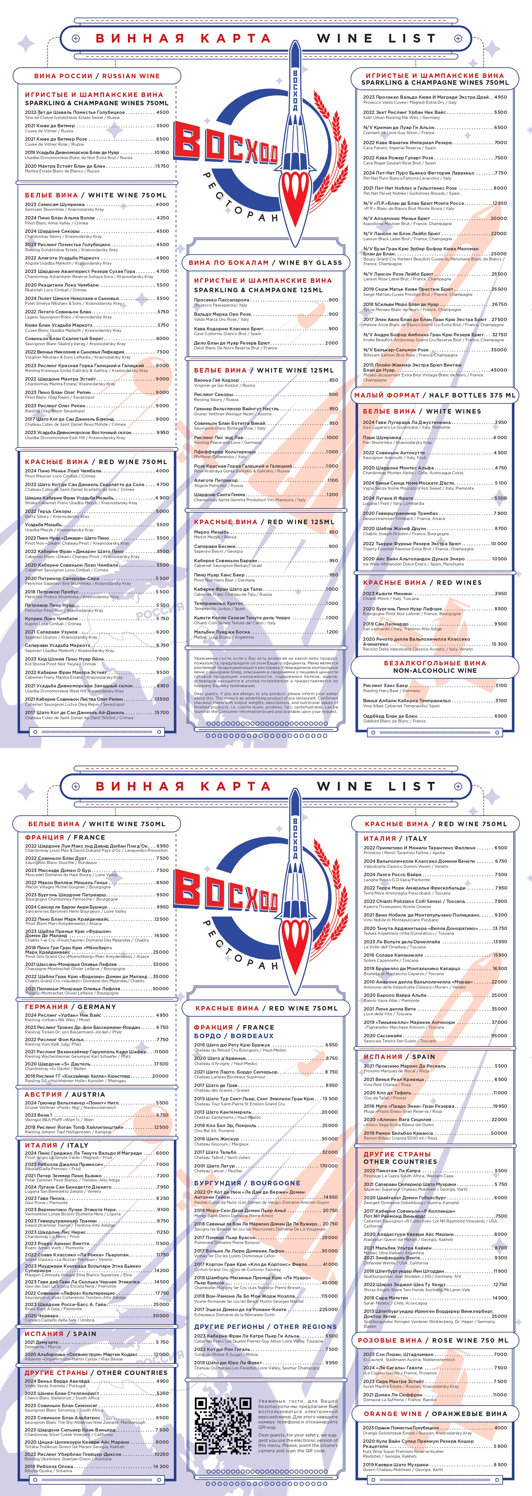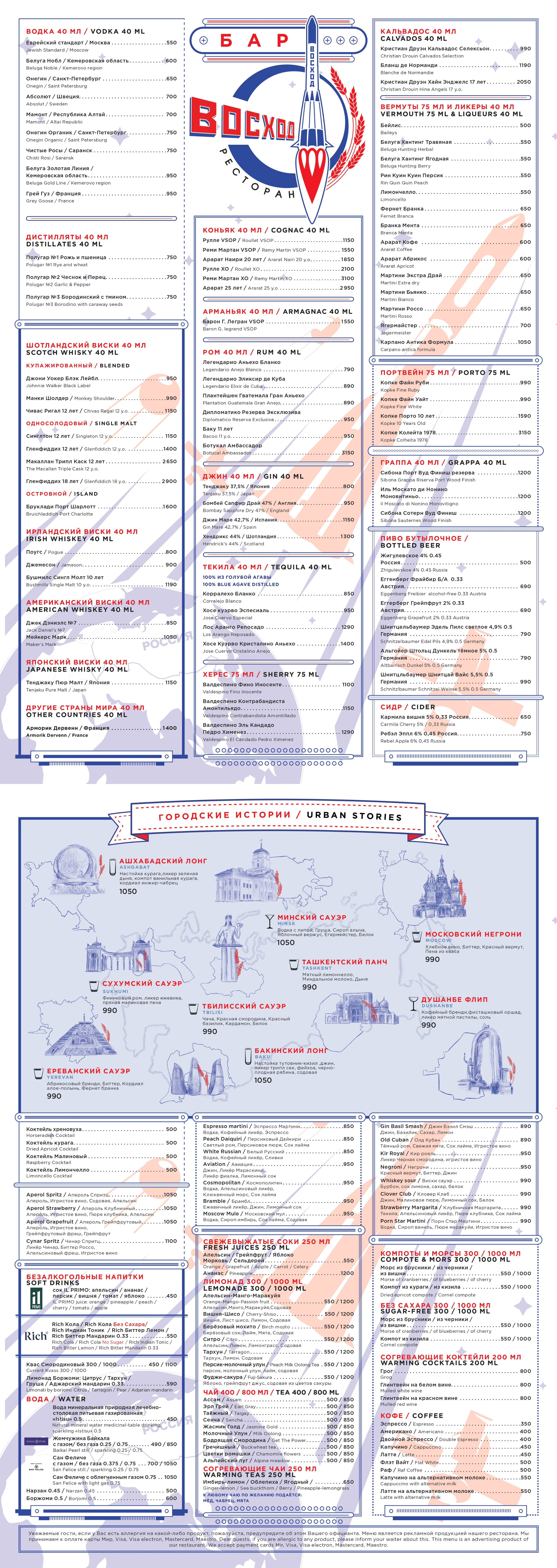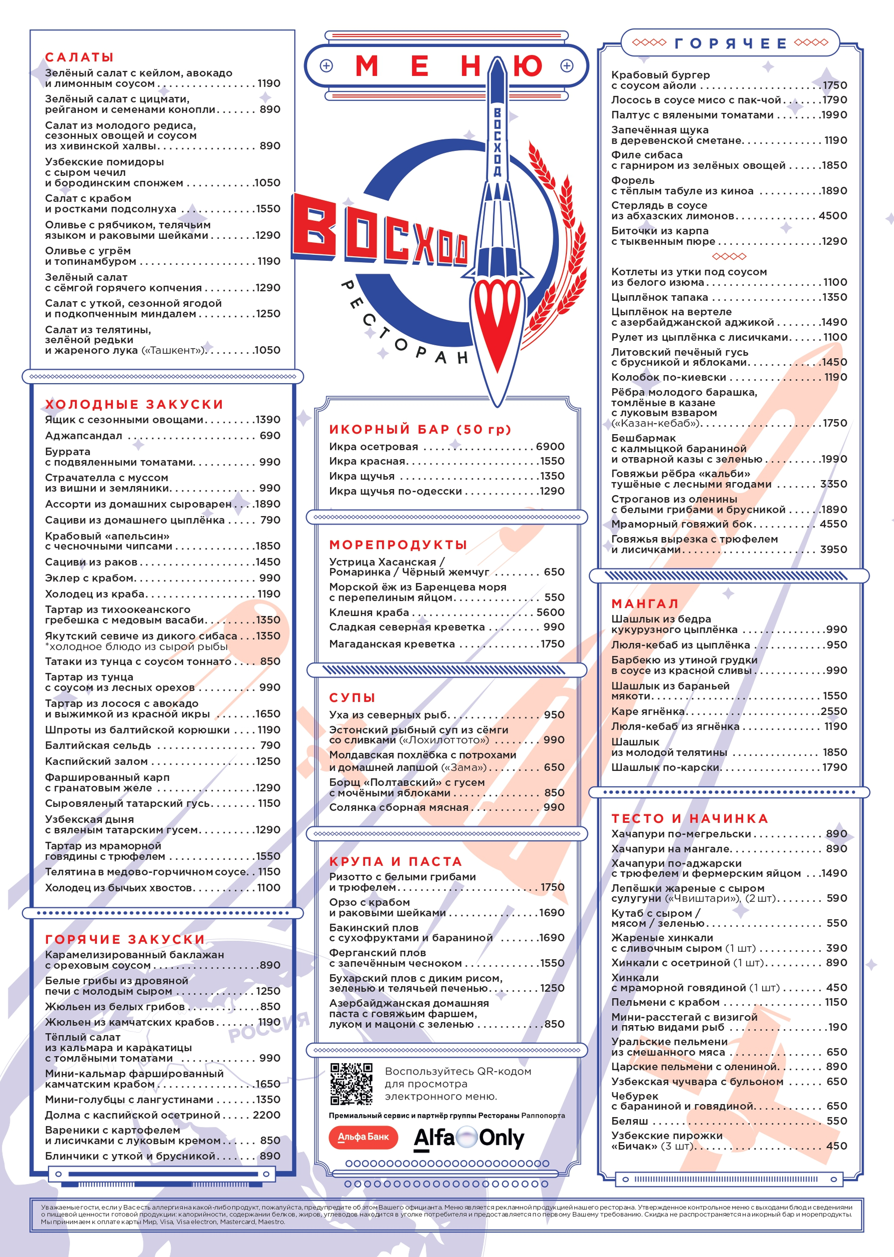 Меню Восход Ресторан (RUS)